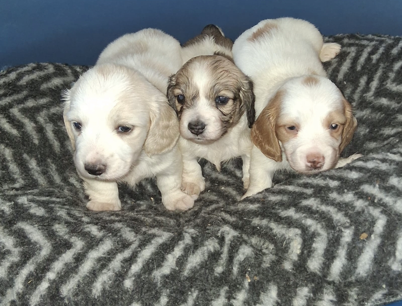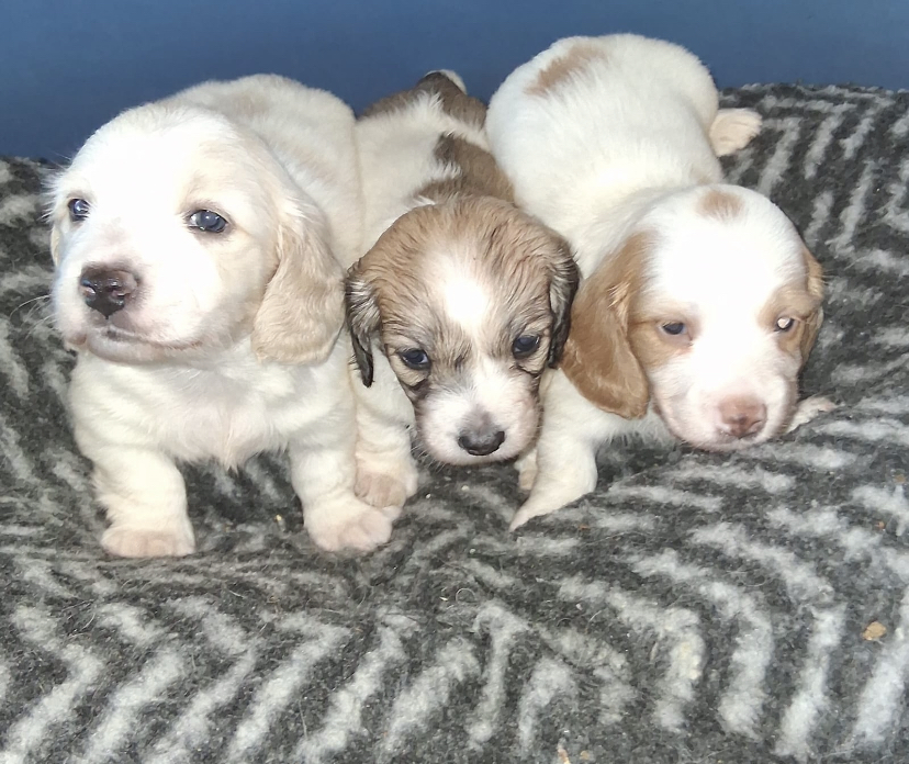 Longhaired Dachshund Puppies: We Are Very Happy To Announce We Have A Beautiful Litter Of Super Rare Longhaired Piebald Puppies. We Have One Royal Cream And White. We Have A Shaded Cream And White. And We Have A Golden Cream And White.. Each Puppy Has Beautiful Markings And Each Have Their Own Personality’s. We Have Decided We Won’t Register Them Cause We Want Pet Homes Only.. This Is Our Beautiful Girls First And Last Litter. She Has Done Us Very Proud.